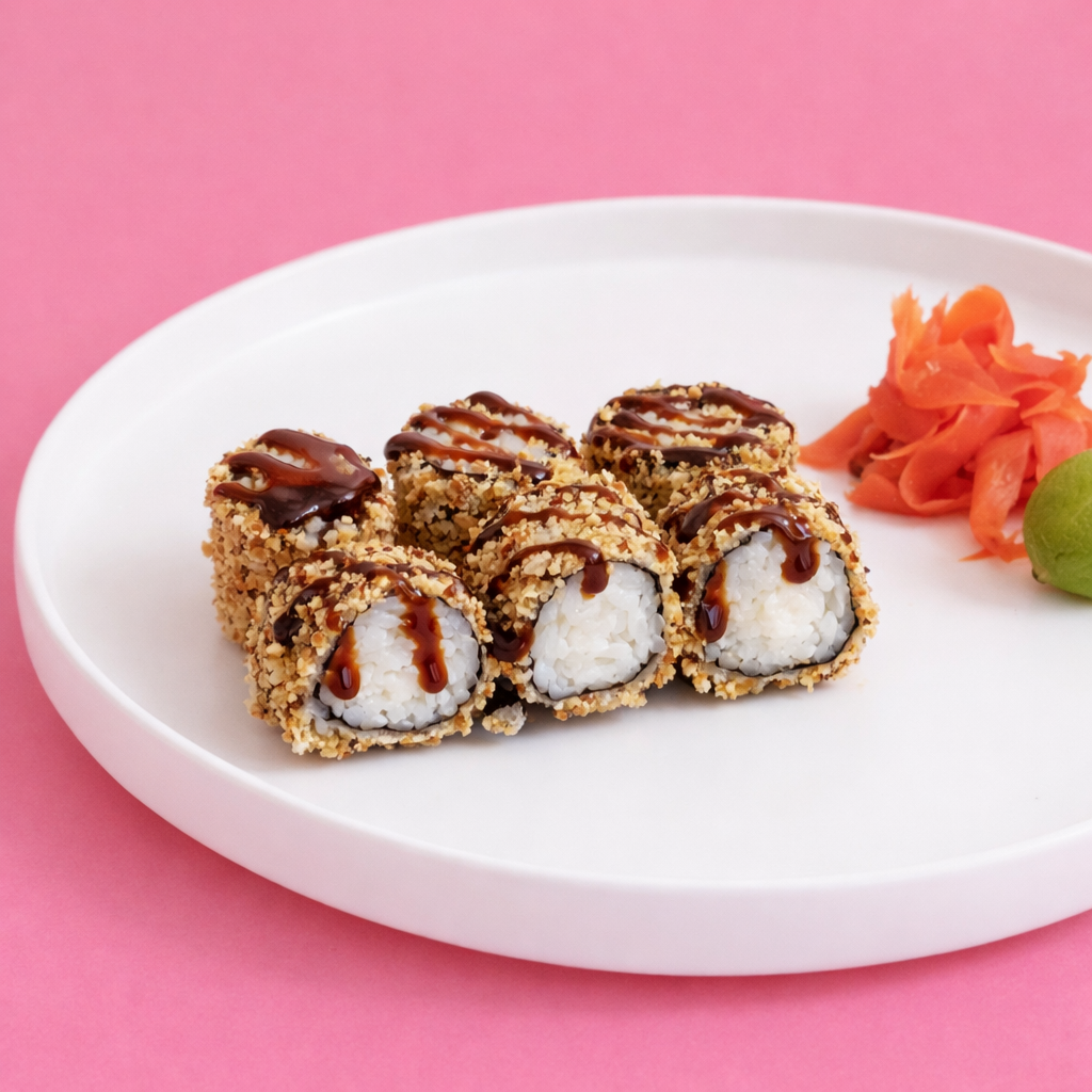 Рис, норі, крем сир, темпура, сухарі панко, соус Унагі..