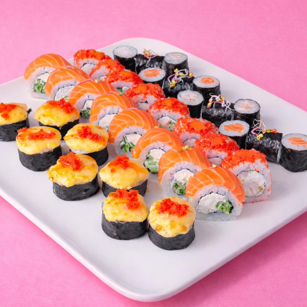 Рол Ніхай, Запечений рол з лососем та сиром чеддер, Запечений рол з вугром, Філадельфія мікс з лососем та тунцем..