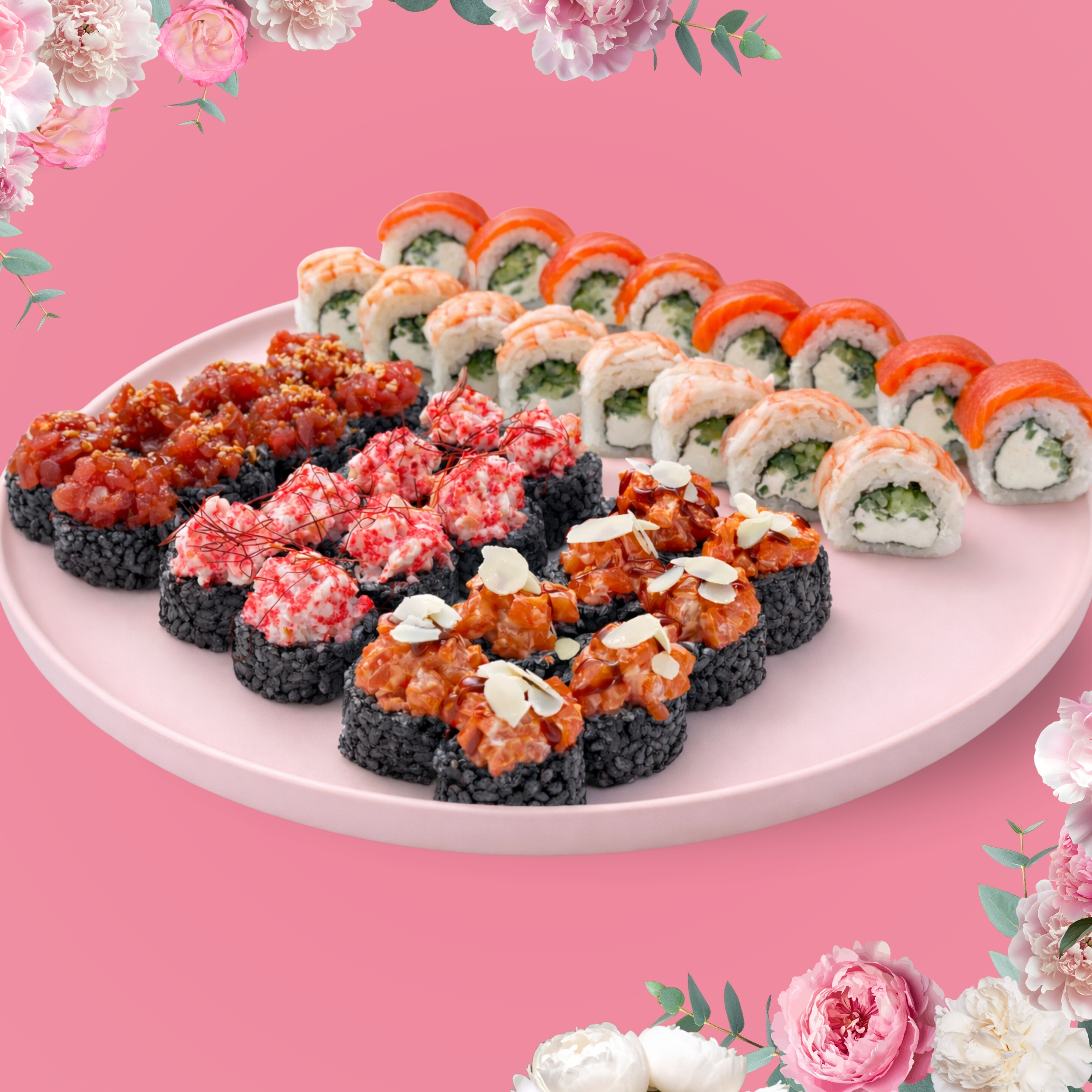 Філадельфія класика, Філадельфія з креветкою, Тар-тар рол з креветкою black, Тар-тар рол з тунцем black, Тар-тар рол з лососем black.