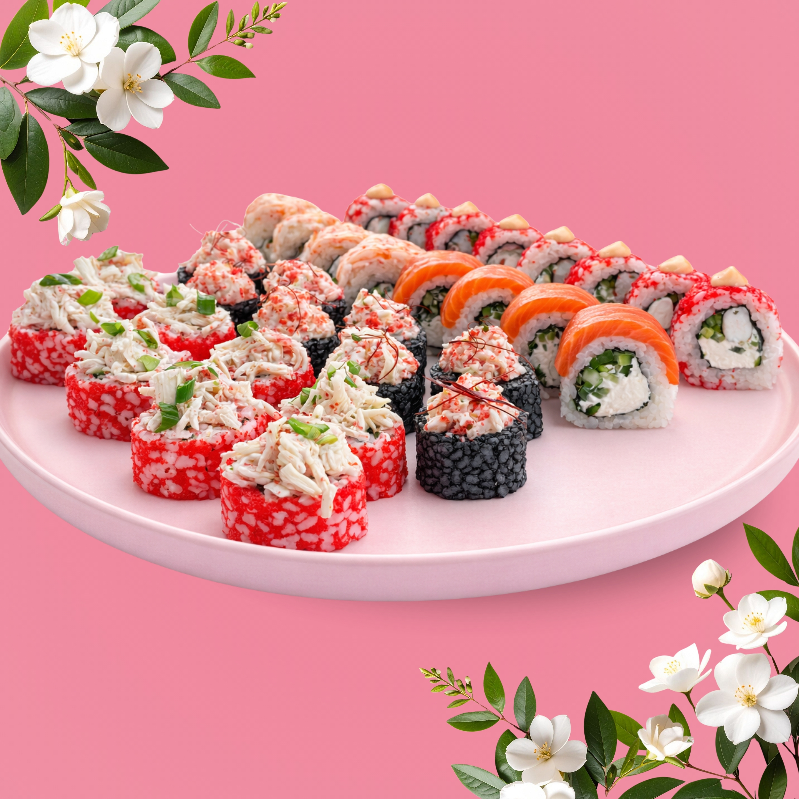 Філадельфія класика, Філадельфія з креветкою зверху, Тар-тар рол з креветкою black, Філадельфія з креветкою в ікрі, Рол Крабовий салат.