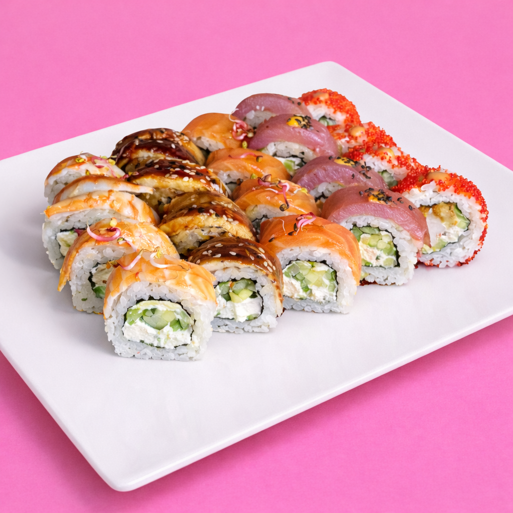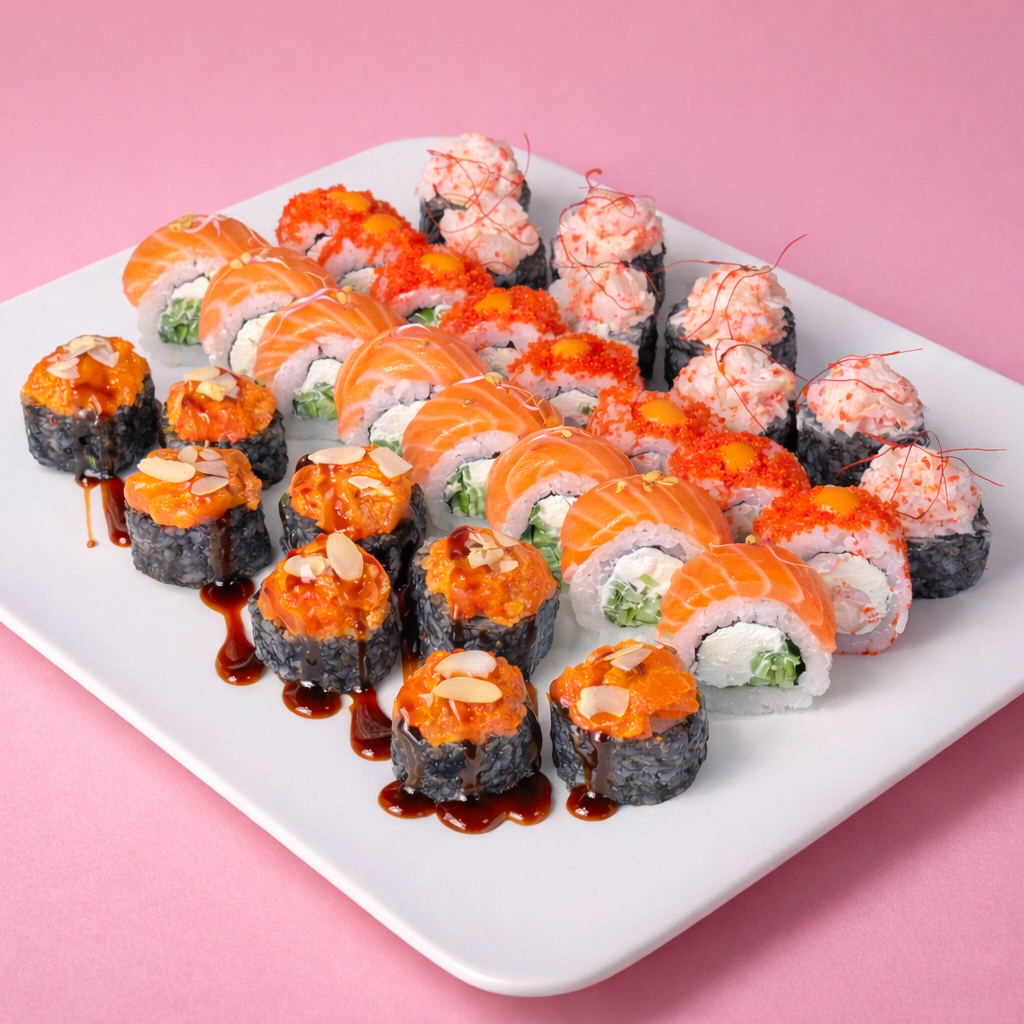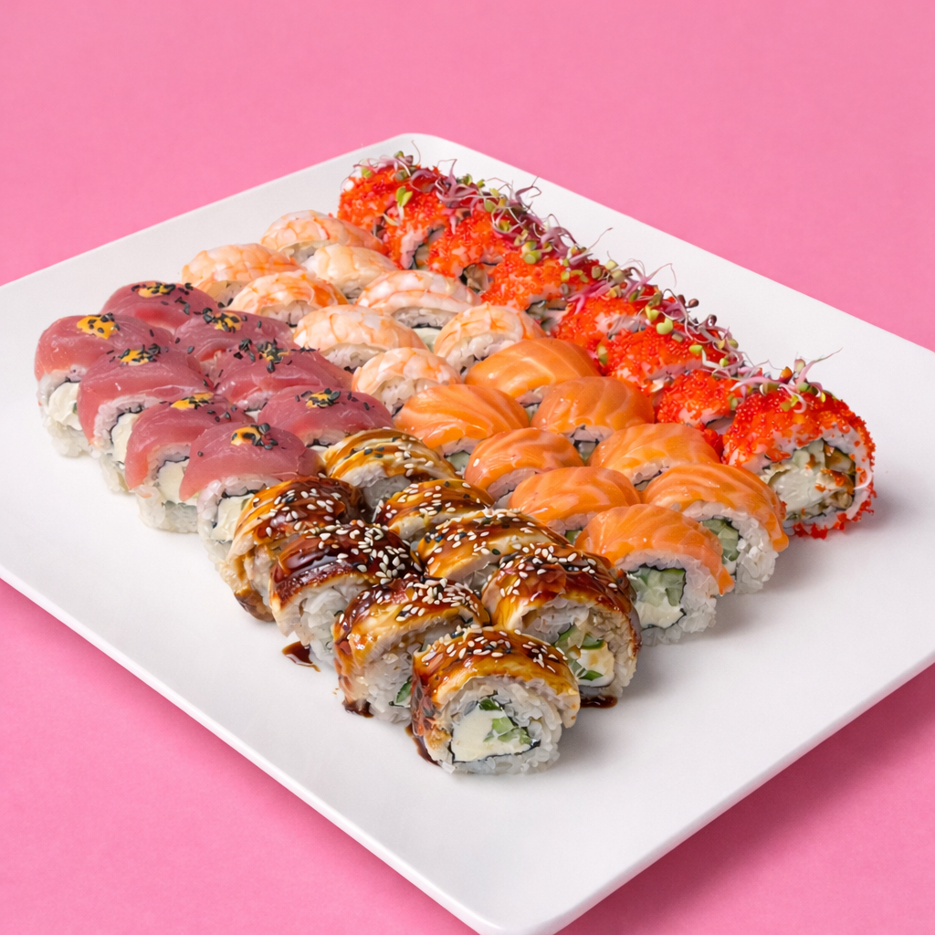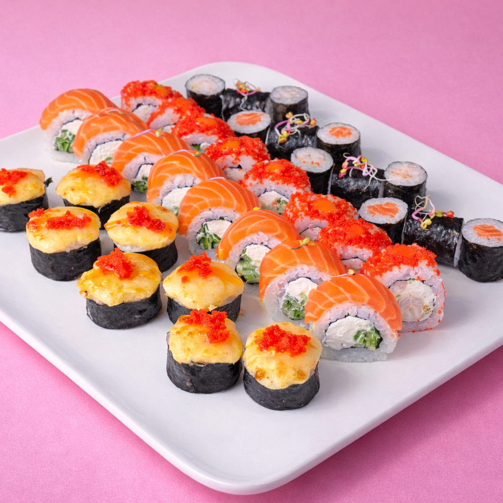 Найчастіше набори суші та ролів замовляють, коли збирається компанія близьких людей. На нашому сайті ви знайдете сети різного об‘єму. Навіть якщо зібралось багато людей, ви знайдете у нас варіант суші-сету і на цей випадок. Наші майстри створили набір вагою 1,5 кг. Тому більше не потрібно нести з магазину багато їжі незрозумілої якості та смаку. Достатньо зробити лише одне замовлення і через деякий час насолоджуватись екзотичним частуванням разом з друзями, у якому кожен знайде щось собі до смаку.