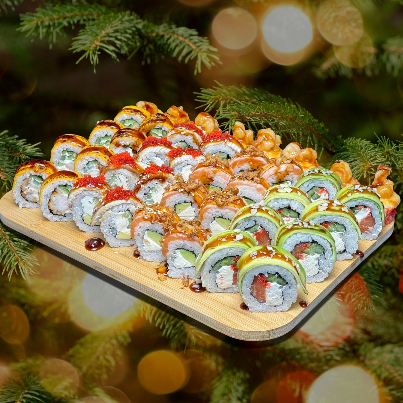 Kaifui Sushi Полтава пропонує великий вибір наборів суші і ролів. Наші майстри створили різні комбінації, серед яких можна знайти ідеальний варіант для будь-якої нагоди. У меню представлені сети різних розмірів. Завдяки цьому ви можете обрати рішення як для звичайного обіду на роботі чи романтичного побачення, так і для великої компанії. У нашому меню набір супер великого об‘єму для особливих ситуацій, коли збирається багато людей.