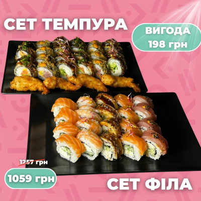 Неймовірно вигідна пропозиція — замовлення одразу двох сетів зі знижкою на другий набір суші та ролів. Не прогавте таку нагоду. Слідкуйте за оновленнями новин сайту та отримуйте змогу посмакувати улюблені екзотичні делікатеси.